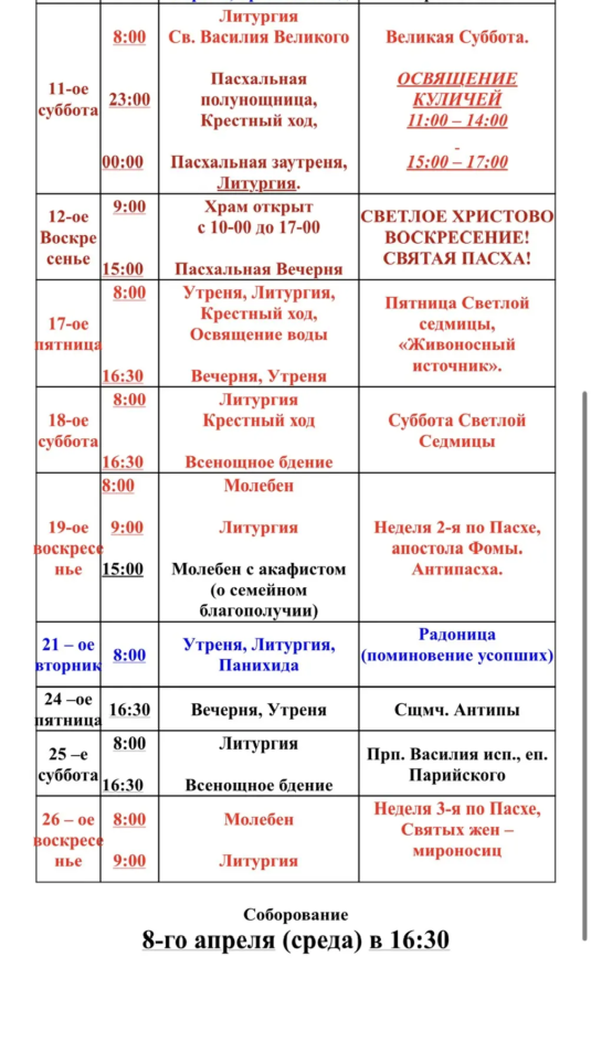 Расписание богослужений